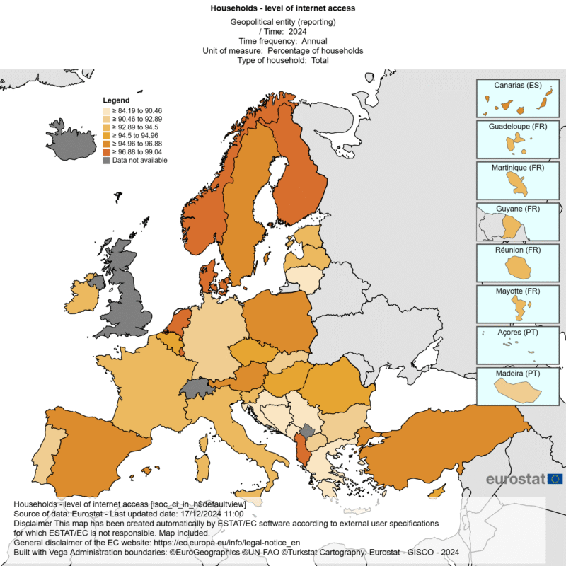 A medida que más actividades cotidianas, trámites y oportunidades laborales se trasladan al ámbito de servicios en línea, se corre el riesgo de exclusión de quienes no tienen acceso o competencias digitales suficientes. En la Unión Europea, todavía alrededor del 6% de la población (16–74 años) nunca ha usado Internet, porcentaje que sube a dobles dígitos entre personas mayores o en regiones rurales específicas. Esta brecha es más pronunciada a nivel global, donde miles de millones de personas en países en desarrollo carecen de conectividad de calidad.
